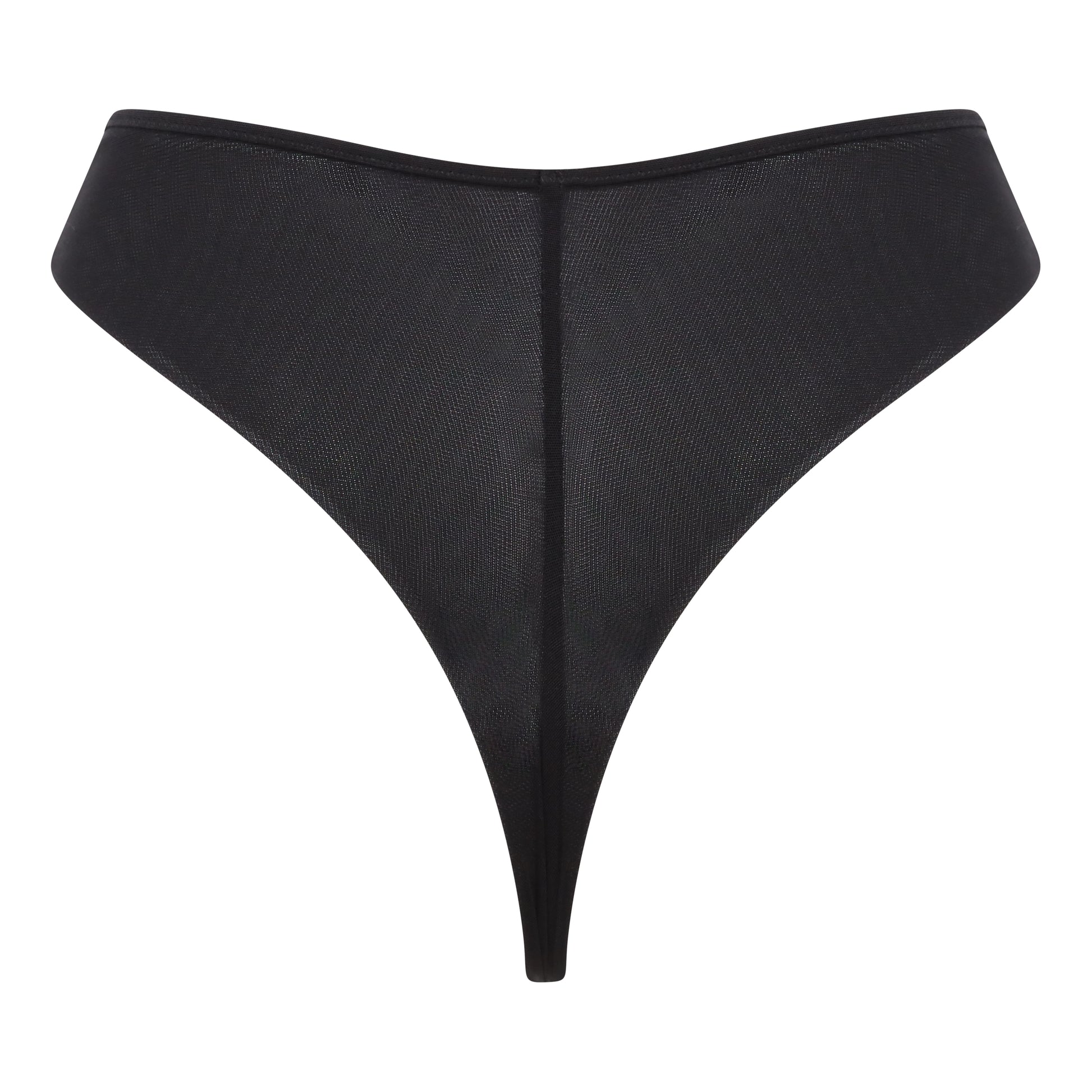 Slip coquin de style brésilien en maille transparente noire. Atteint juste sous votre nombril et met en valeur vos courbes.
