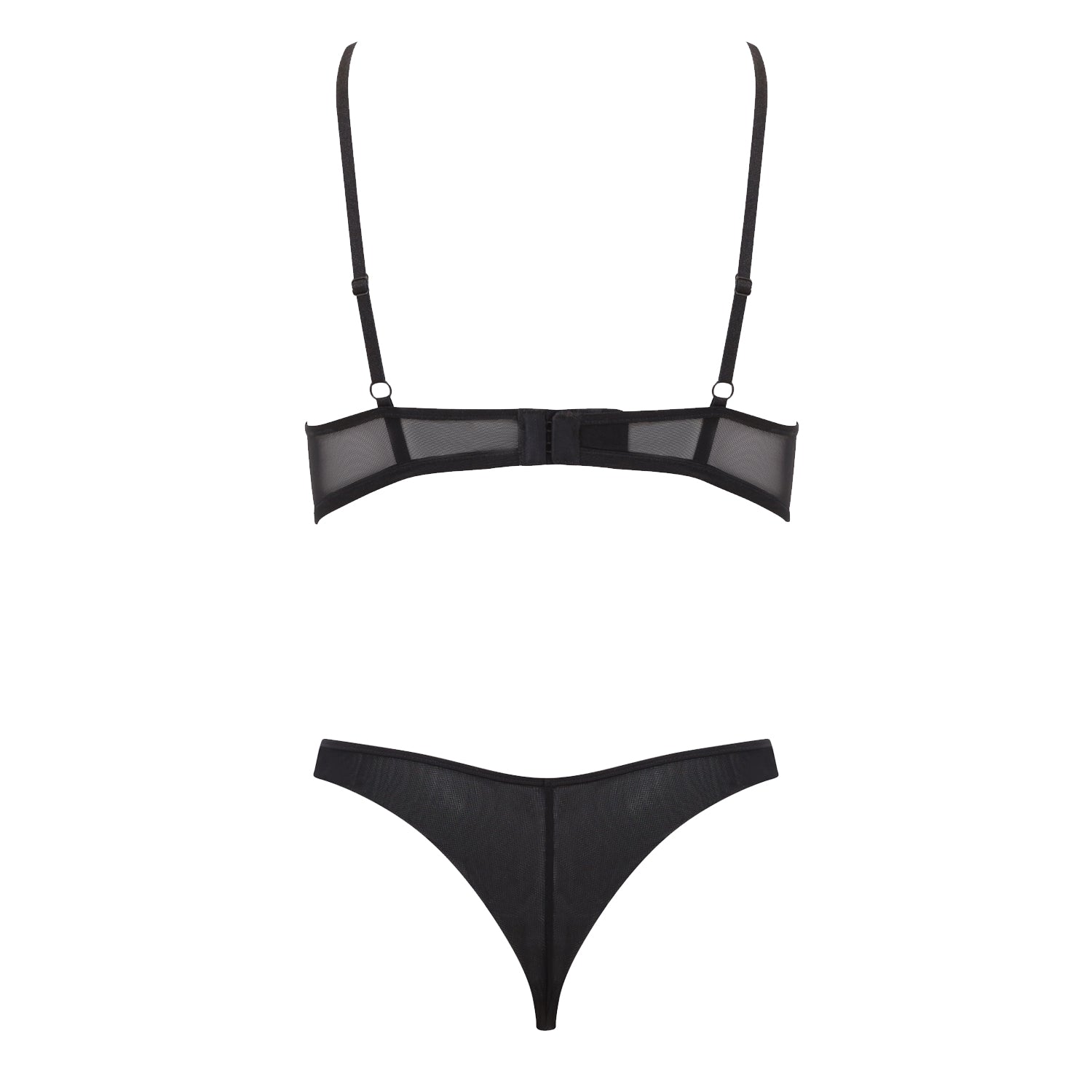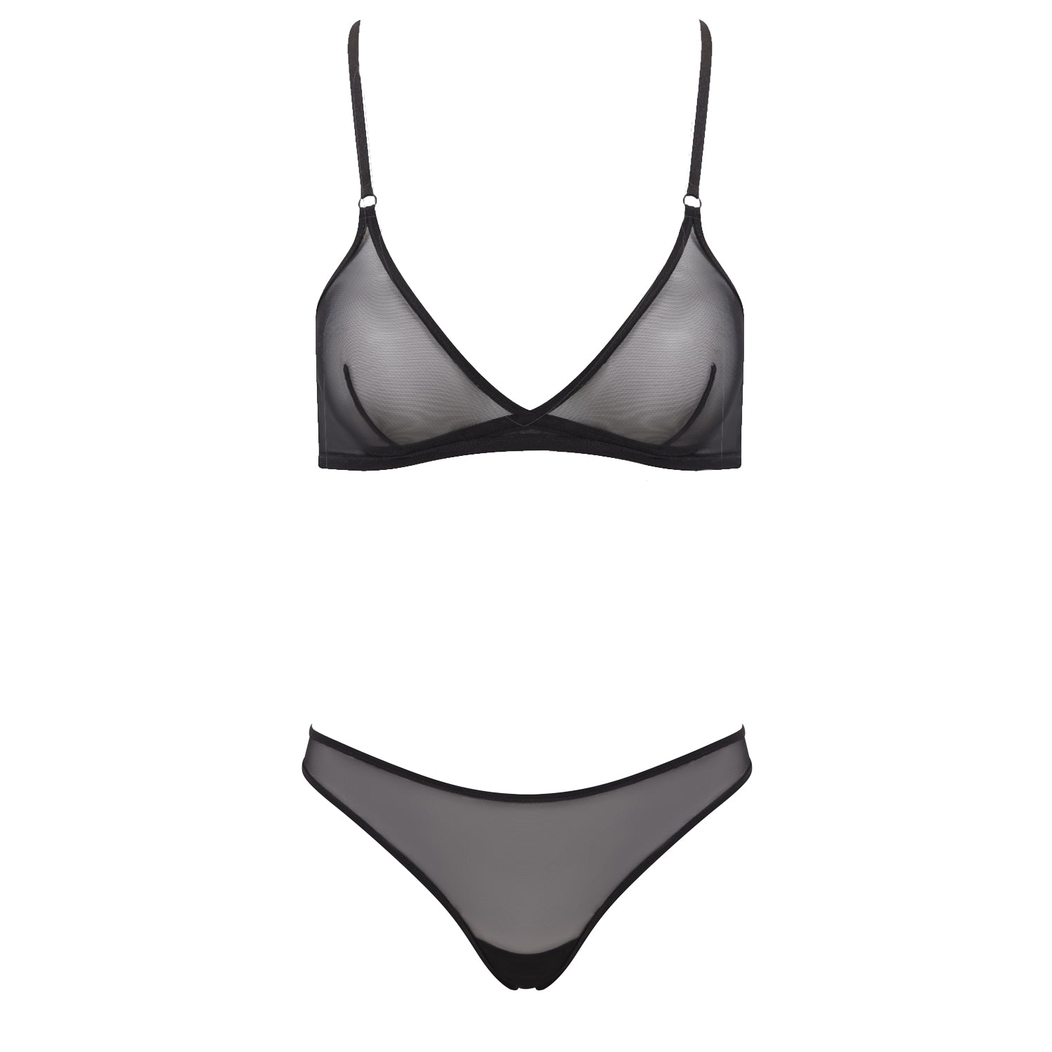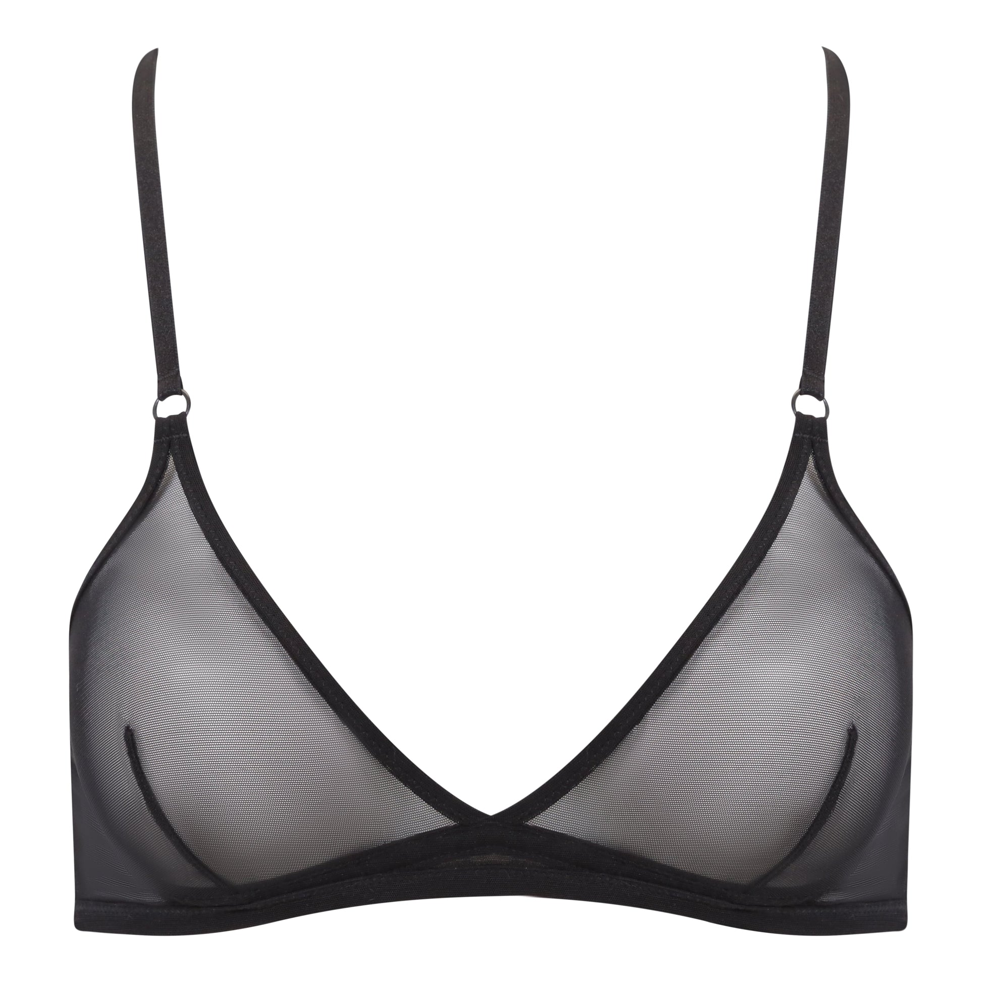 The triangle bralette is an unwired black sheer mesh bralette featuring adjustable shoulder straps, a rear hook and eye fastening and a lightweight construction.